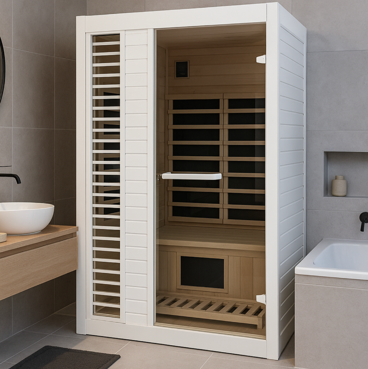 Reaches temperature in just 5–10 minutes and uses 4–6× less electricity than traditional saunas, making it an energy-efficient choice for daily use.