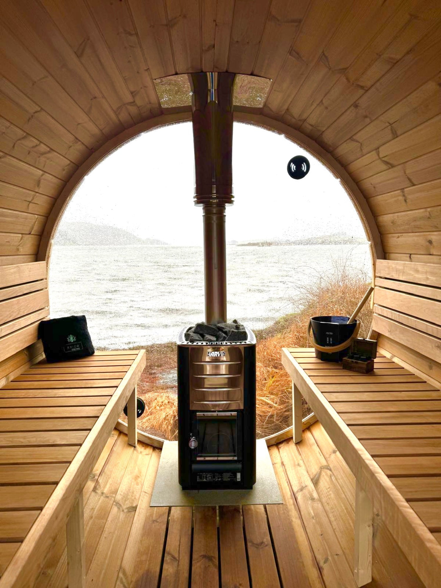 Its rounded shape promotes rapid, even heat distribution, while the 8mm tempered glass front opens your session to the outdoors, offering both visual immersion and architectural elegance. Ideal for garden sanctuaries, spa terraces or scenic rural escapes.