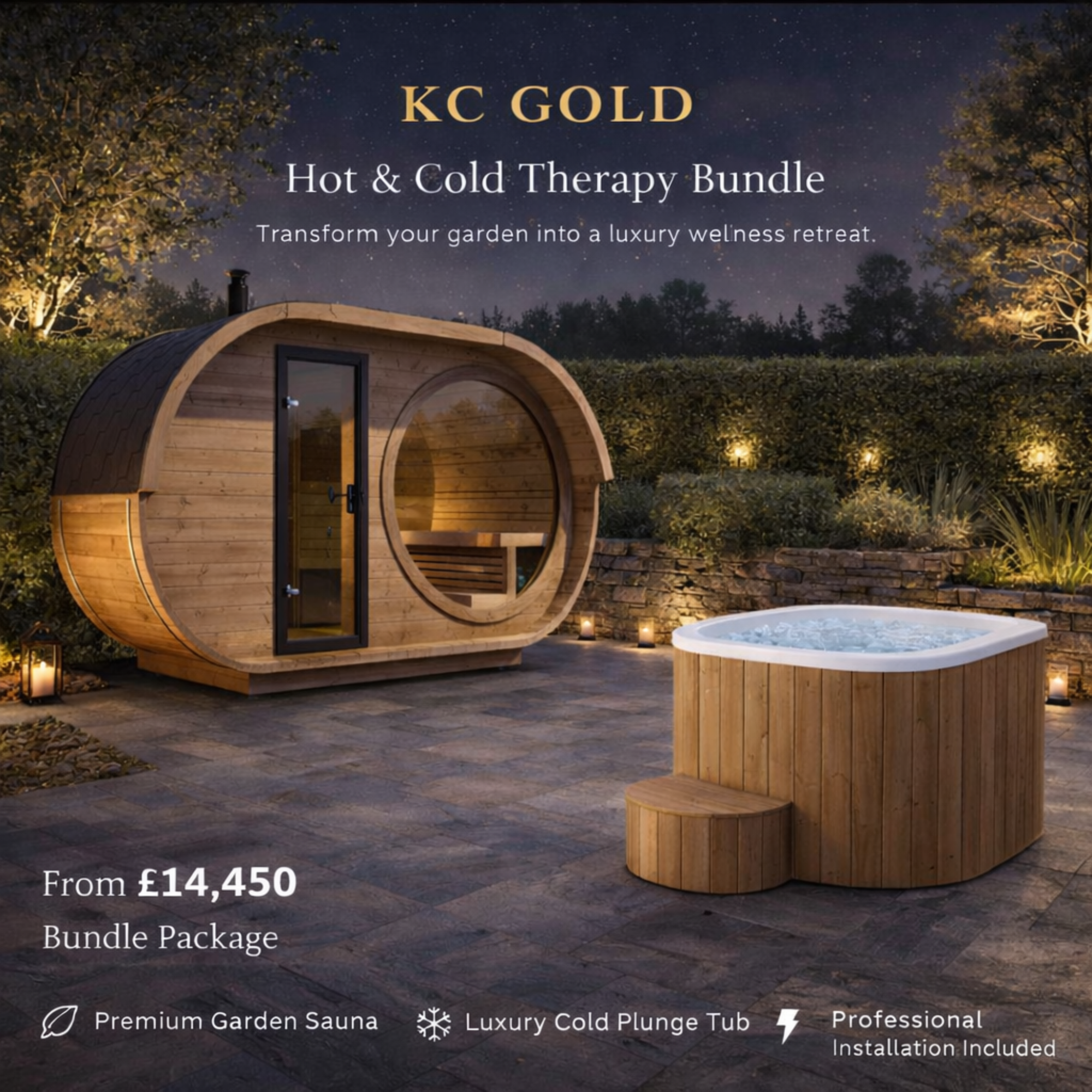 Together, these elements create the ultimate contrast therapy environment — bringing professional-grade recovery and wellness into your own garden.